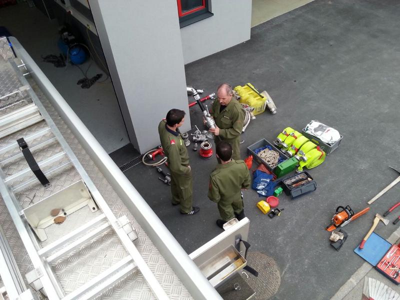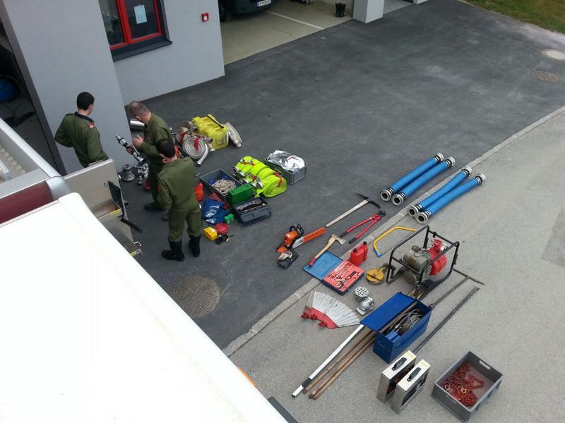 Im Rahmen dieser Übung wurden 2er-Gruppen gebildet und jede dieser Gruppen bekam einen Laderaum des TLF-A zugewiesen. Die Gruppen setzten sich jeweils aus einem erfahrenen und einem jüngeren FF-Mitglied zusammen. Es sollte somit sichergestellt werden, dass jedes Gerät erkannt und gefunden wird. Die einzelnen Geräte wurden aus dem Fahrzeug genommen und je Laderaum ausgelegt. In einem Stationsbetrieb musste sich jede Gruppe mit den Inhalten jedes Laderaumes auseinander setzen.