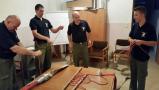Gerätekunde TLFA: Jedes Übungsmitglied erhielt ca. 15 Kärtchen, musste den Lagerort des Gerätes bei geschlossenem Geräteraum zeigen und die Funktion bzw. den Verwendungszweck beschreiben. Gerätemeister OBM Grosinger und Gerätewart LM Reithofer unterstützten im Bedarfsfall.