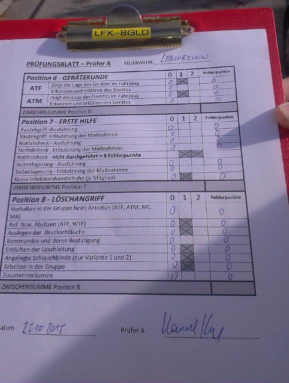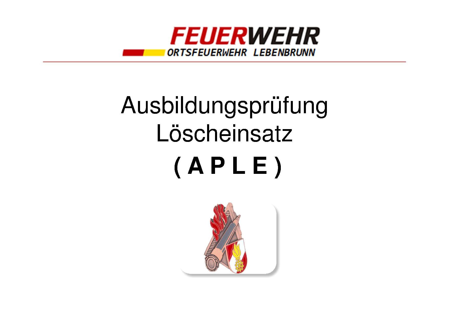 15 Mann der Ortsfeuerwehr Lebenbrunn absolvierten am 25. Oktober 2015 erfolgreich die Ausbildungsprüfung-Löscheinsatz (APLE), Stufe 1, Variante 4.