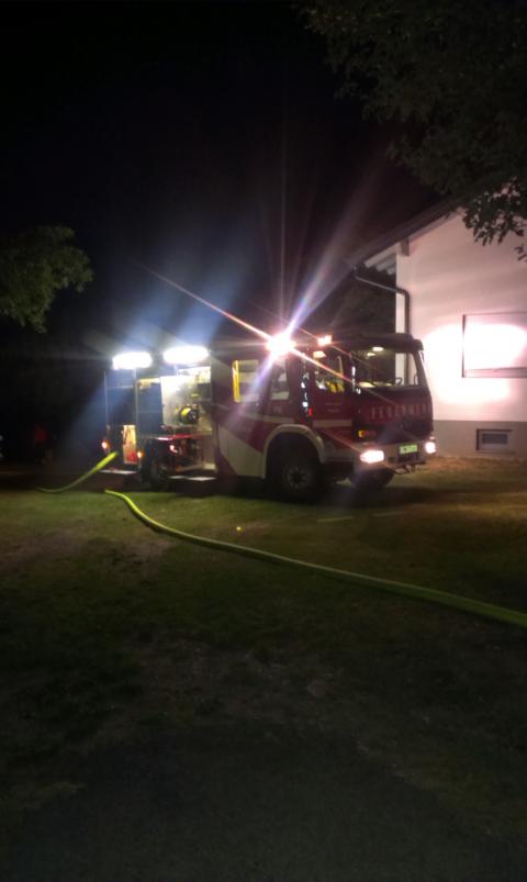 „Brand einer Scheune bei Fam. Schlögl (Nr. 69)“ so lautete die Übungsannahme für die Nachtübung am 28. August.
