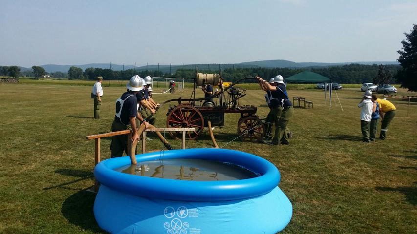 Am Samstag übten beide Gruppen (getrennt) den praktischen Umgang mit der Tragkraftspritze (TS).