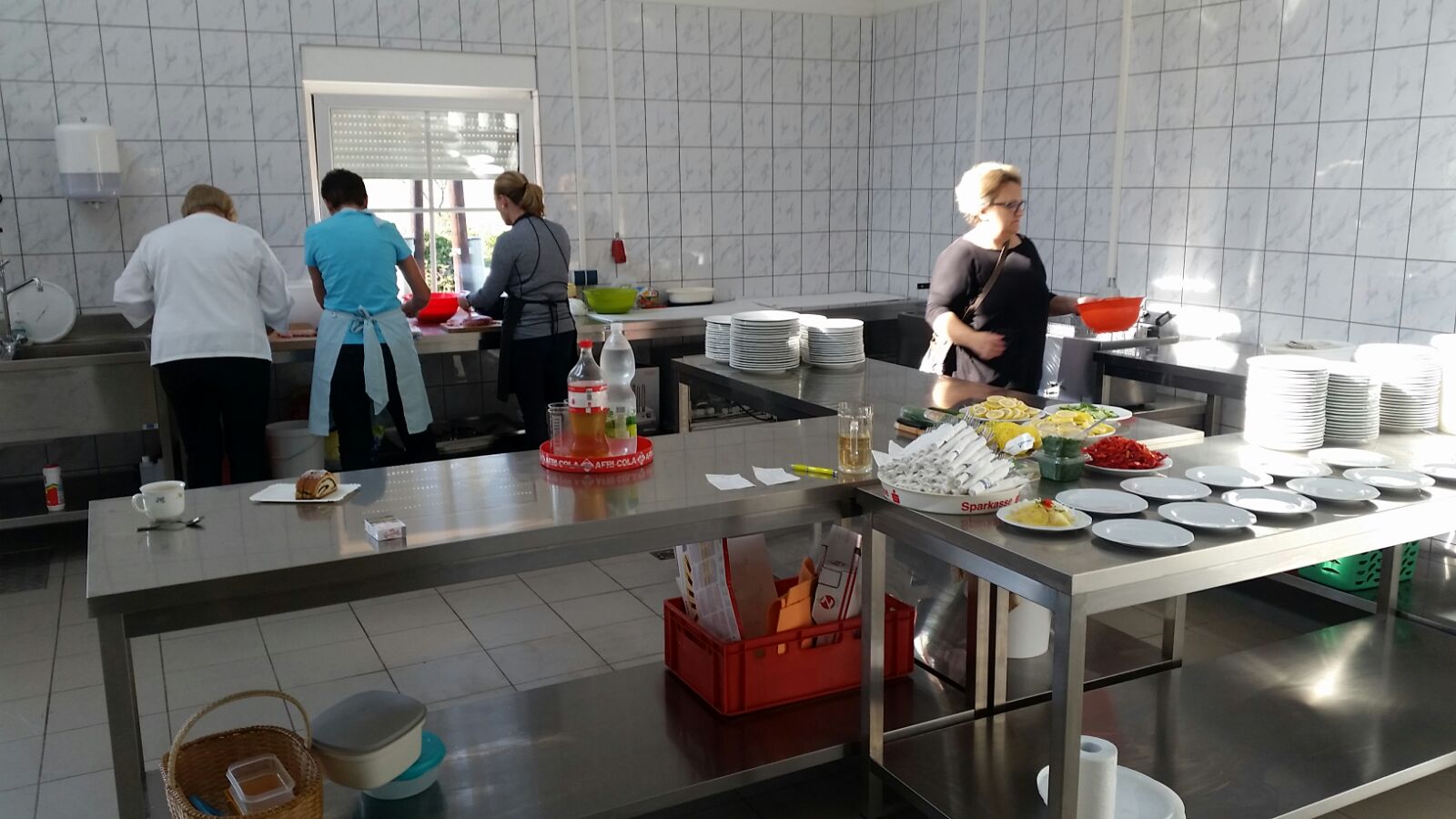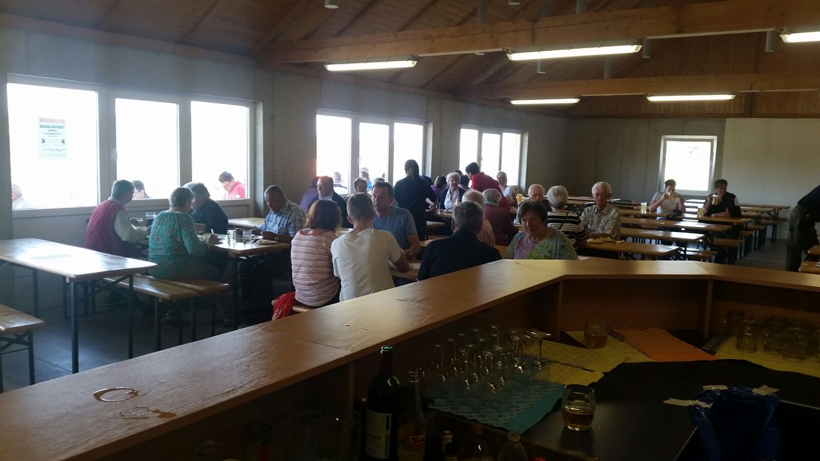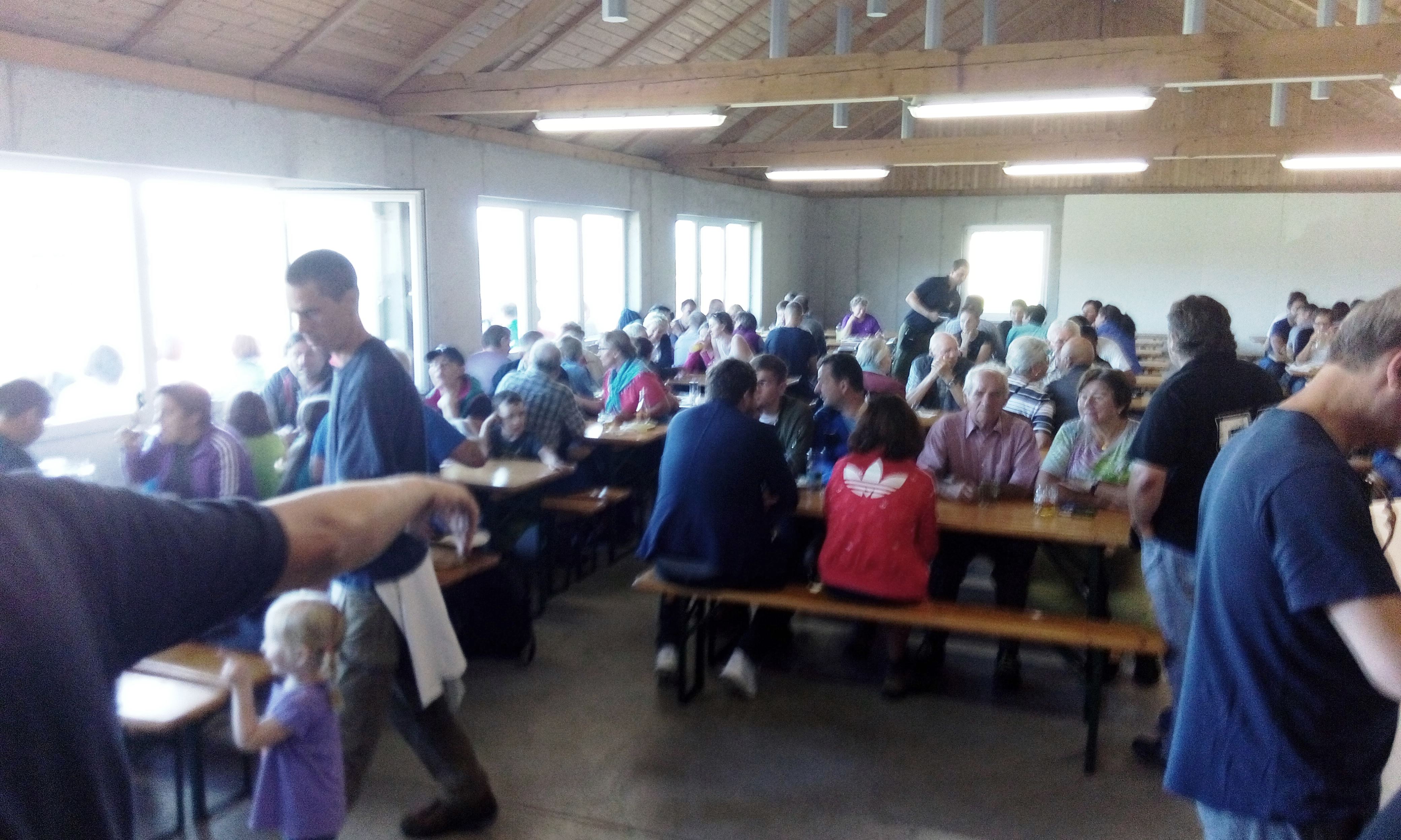 In der Veranstaltungshalle warte für alle das hart erwanderte Mittagessen.
