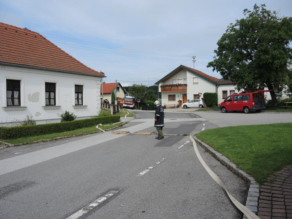„Brand eines landwirtschaftlichen Gebäudes“ war die Annahme für eine Brandeinsatzübung am 26. Juni 2016.