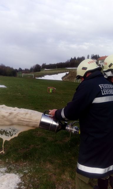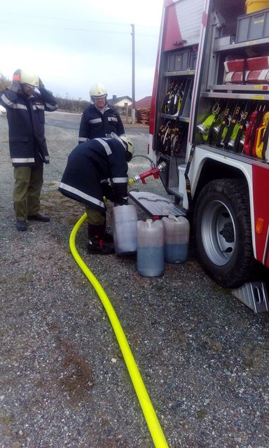 Eine Gruppe begann unverzüglich mit der Brandbekämpfung. Diese wurde mit Schaum durchgeführt und der Fahrzeugbrand konnte relativ rasch gelöscht werden. Während der Löscharbeiten wurde von der anderen Gruppe der Greifzug vorbereitet damit die anschl. Fahrzeugbergung durchgeführt werden konnte.