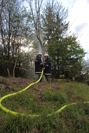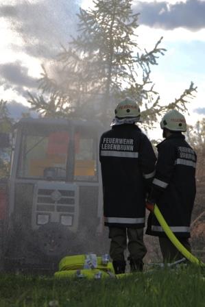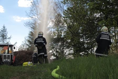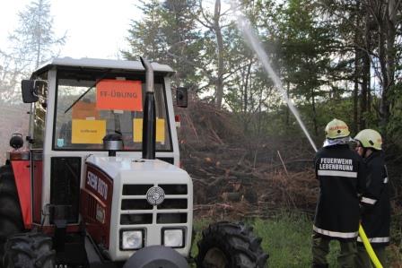 Im Zuge von Holzarbeiten geriet ein Traktor in Vollbrand und löste einen Flurbrand aus. So die Annahme für die Brandeinsatzübung am 13.5.2017.