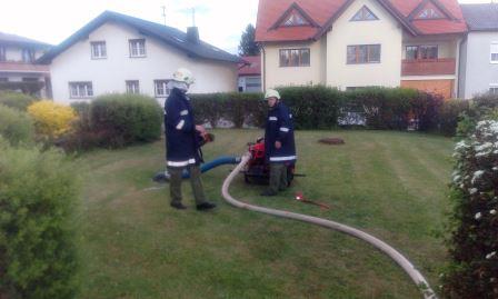 Die Erkundung vor Ort (Hochbehälter) wurde vom Gruppenkommandaten des TLF-A durchgeführt. Dieser ordnete die ersten Löschmaßnahmen an und alarmierte die 2. Gruppe nach. Diese Gruppe rückte mit MTF, Traktor und TSA aus und begann mit dem Aufbau einer B-Zubringerleitung zum TLF-A (Wasserentnahmestelle Bassin am Dorfplatz). Währenddessen führte die TLF-A-Besatzung die Löscharbeiten weiter, wobei der Fokus gleich auf den sich ausbreitenden Flurbrand gelegt wurde. Ebenso wurde die Zubringerleitung von dieser Besatzung vervollständigt.