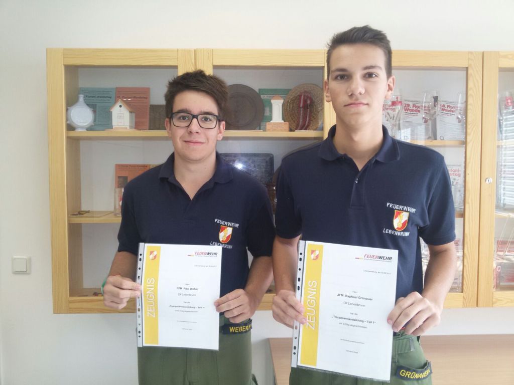 PFM Grünauer Raphael und PFM Weber Paul haben am 29. und 30. September die letzten Module (überörtlicher Teil) der Truppmannausbildung 1 in Oberpullendorf und die Abschlussprüfung positiv abgeschlossen. Sie sind nunmehr zum Besuch weiterer Lehrgänge an der Landesfeuerwehrschule berechtigt.