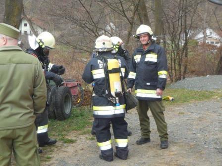 Die Inspizierung, bestehend aus einem schriftlichen und einem praktischen Teil, starte im Feuerwehrhaus mit der Einsichtnahme in die Aufzeichnungen. Von ABI Stifter wurden die Fahrtenbücher, die Handbücher der Fachwarte (Atemschutz und Geräte) sowie das Kassabuch stichprobenweise geprüft. Gleichzeitig wurde der Inspizierungsbericht erstellt. Seitens der Gemeinde war Vzbgm. Thurner vertreten.