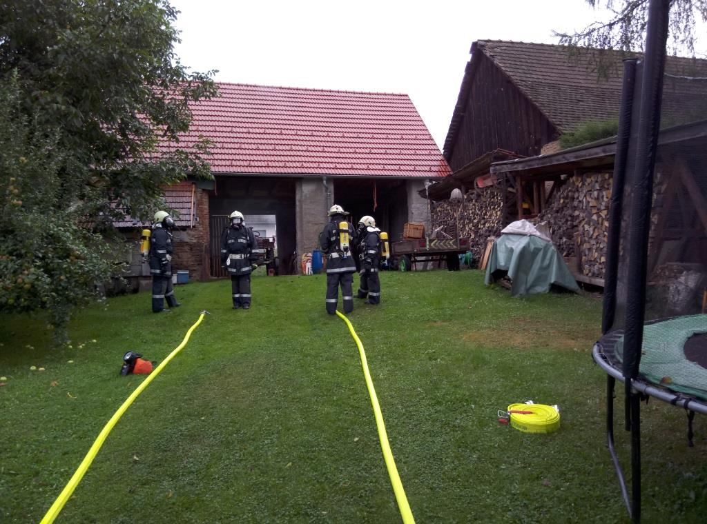 - Bekämpfung des Scheunenbrandes mit 2 C-Rohren (Obere Gasse)
