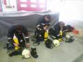 Zu Beginn der Prüfung standen Fragen und das Maskenzerlegen am Programm. Beide Stationen konnten rasch abgearbeitet werden. Danach wurde die Hindernisstrecke und abschließend die Rettungsstrecke absolviert. Die Bewertung ergab einige kleine Fehler - die Prüfung konnte jedoch mit Erfolg bestanden werden.