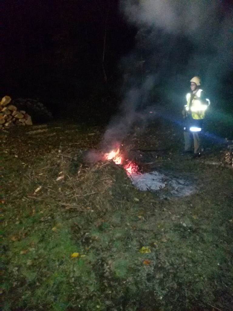 Während der Aufräumarbeiten wurden die Einsatzkräfte von 2 Autofahrern informiert, dass an der Hottergrenze zwischen Lebenbrunn und Redlschlag ein Haufen mit Holzabfällen brennt. Die Einsatzkräfte begaben sich unverzüglich zum Brandobjekt und löschten den Brand mittels HD-Rohr. Nachdem die beiden Einsätze abgearbeitet waren, konnte um 18:29 Uhr ins Feuerwehrhaus eingerückt werden.