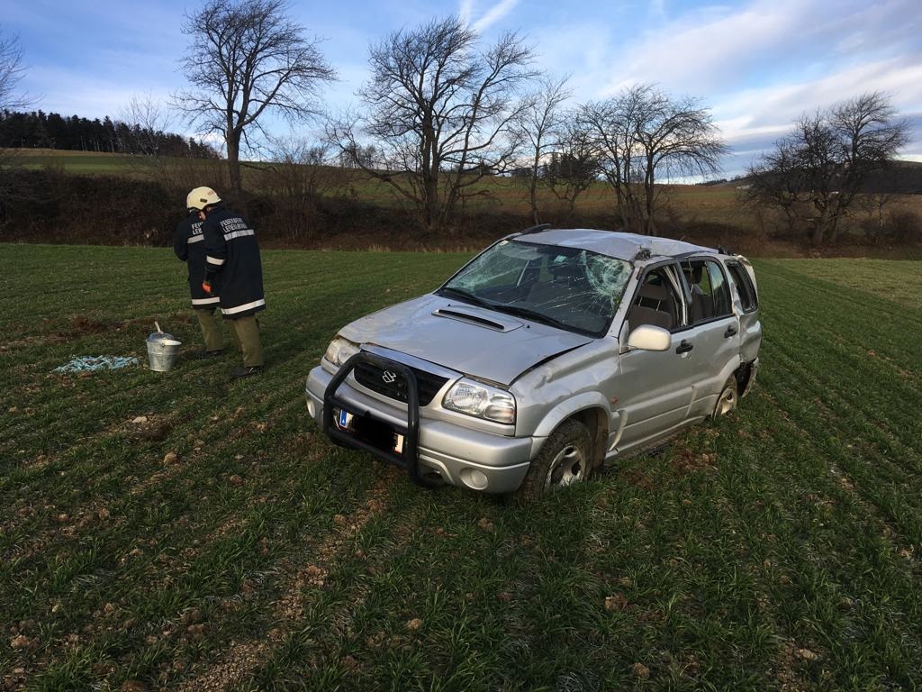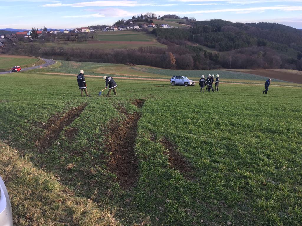Der Verkehrunfall selbst wurde von mehreren Feuerwehrmitgliedern beobachtet, da sich diese am Dorfplatz befanden und auf den Beginn des Gottesdienst warteten. Ein aus Kogl kommendes Fahrzeug geriet ins Schleudern, überschlug sich mehrmals und landete im angrenzenden Feld.