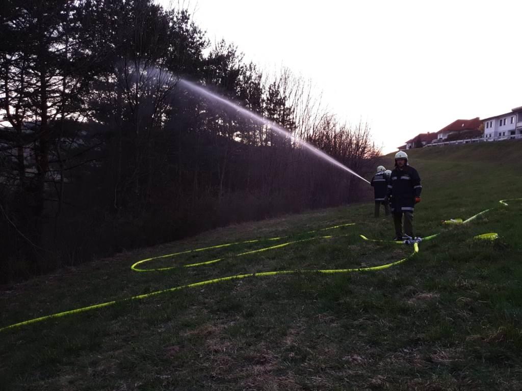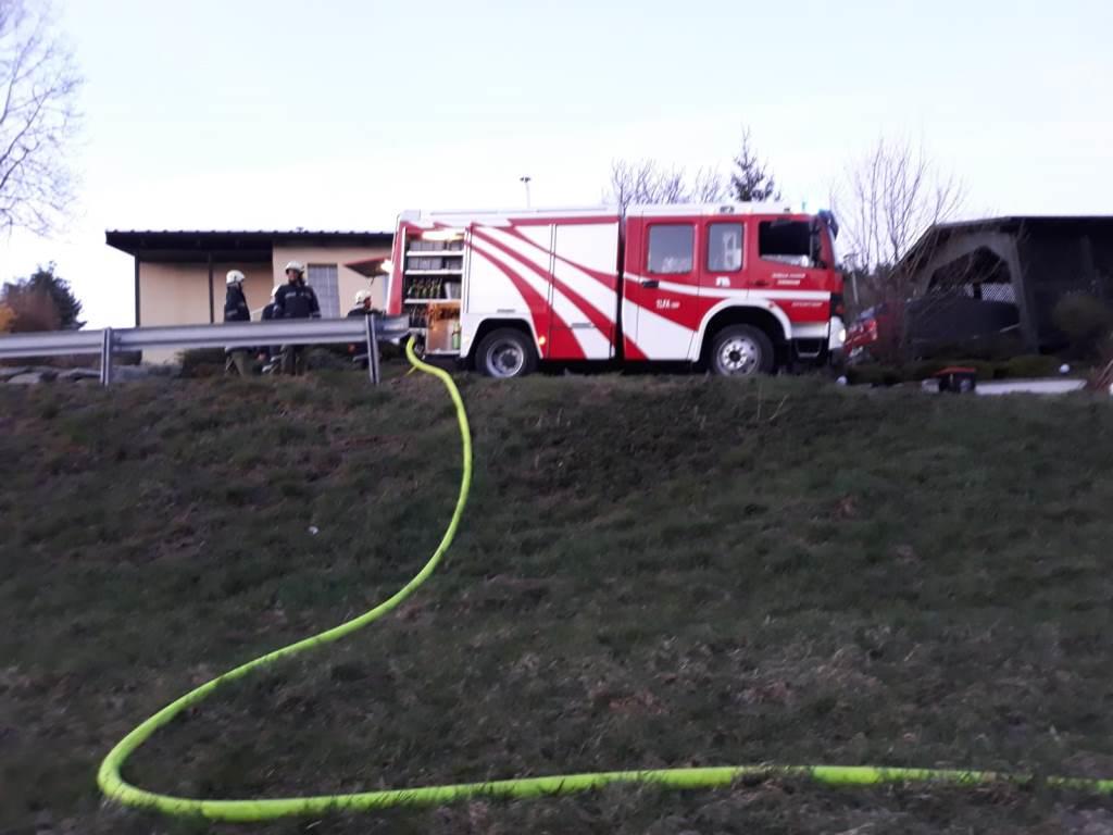 Ein PKW geriet in der Löwengasse ins Schleudern und rutschte am abschüssigen Gelände gegen einen Baum. Das Fahrzeug fing dabei Feuer, der Brand begann auf den angrenzenden Wald überzugreifen. Nach der Alarmierung rückte die OF Lebenbrunn mit dem TLFA sowie dem MTF aus. Eine Gruppe begann unverzüglich mit der Personenrettung. Gleichzeitig wurde das Fahrzeug gesichert und ein einfacher Brandschutz aufgebaut. Eine weitere Gruppe begann mit dem Aufbau einer Löschleitung zur Bekämpfung des beginnenden Waldbrandes. Die Wasserversorgung des TLFA wurde mittels B-Zubringerleitung vom Hydranten in der Löwengasse sichergestellt. Der weitere Löschangriff erfolgte mit 2 C-Rohren.