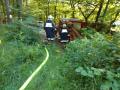 Der Wasser- und Schlauchtrupp begann unverzüglich mit dem Aufbau der Zubringerleitung. Zwischenzeitlich wurde die Löschleitung vom Angriffstrupp errichtet. Dieser Begann im Anschluss mit der Brandbekämpfung. Nachdem der Wassertrupp seinen Teil beim Aufbau der Zubringerleitung erledigt hatte, führte dieser den Löschangriff mit dem 2. C-Rohr durch.