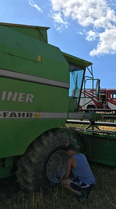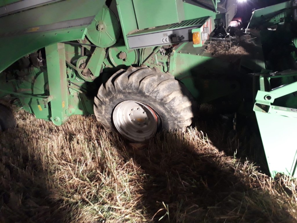 Im Zuge der Getreideernte (Bereich ‚Bodenacker‘) stellte der Fahrer einen Luftverlust im Vorderreifen fest und forderte die OF Lebenbrunn zur Unterstützung an. Diese rückte mit dem TLFA und 3 Mann aus.