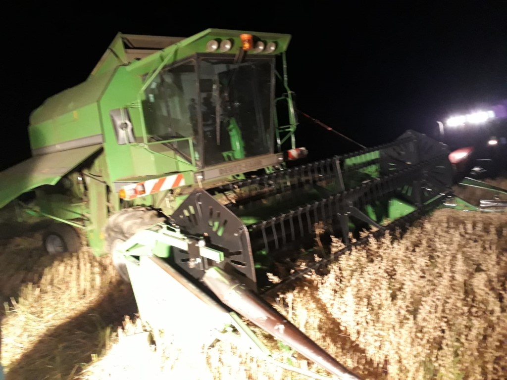 Bei jenem Mähdrescher, welcher schon nachmittags Unterstützung benötigte, hatte sich der Vorderreifen wieder ‚verabschiedet‘. Die OF Lebenbrunn wurde zur Unterstützung gerufen und rückte mit dem TLFA sowie 6 Mann zum Einsatzort (Hottergrenze Lebenbrunn | Kogl) aus. Vorort wurde die Einsatzstelle ausgeleuchtet und der Mähdrescher gesichert. Weiters wurde der Besitzer beim Wechsel des Reifens unterstützt.