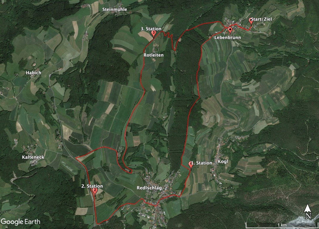 Der erste Teil der Strecke führte über den Güterweg nach Redlschlag. Knapp vor der Ortschaft Redlschlag konnten sich die Wanderer am herrlichen Fernblick über den Bezirk Oberpullendorf erfreuen. Der weitere Weg führte Richtung Guglhupf. Dort war die 2. Labstation aufgebaut. Neben der tollen Aussicht konnte auch eine Kleinigkeit gegessen werden. Über den Güterweg ging es weiter nach Rotleiten, wo der Flüssigkeitsverlust nochmals nachgefüllt werden konnte. Der letzte Teilbereich der Strecke führte zurück nach Lebenbrunn. Im Zielort Veranstaltungshalle bestand die Möglichkeit zum Mittagessen.