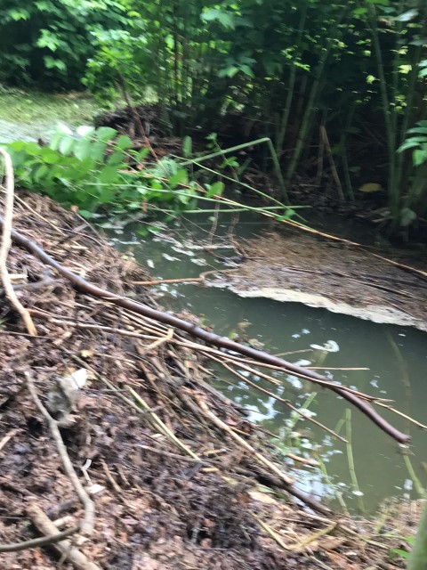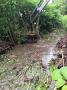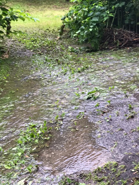 Aufgrund des Starkregens vom Vortag kam es am Güterweg zwischen Rotleiten und Redlschlag im Bereich einer Bachüberquerung zu einer Verklausung. Diese war bereits so weit fortgeschritten, dass das Wasser Teile der Straße verschmutzte.