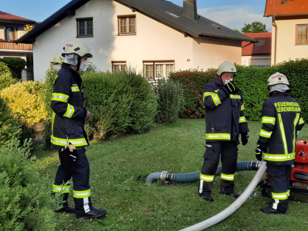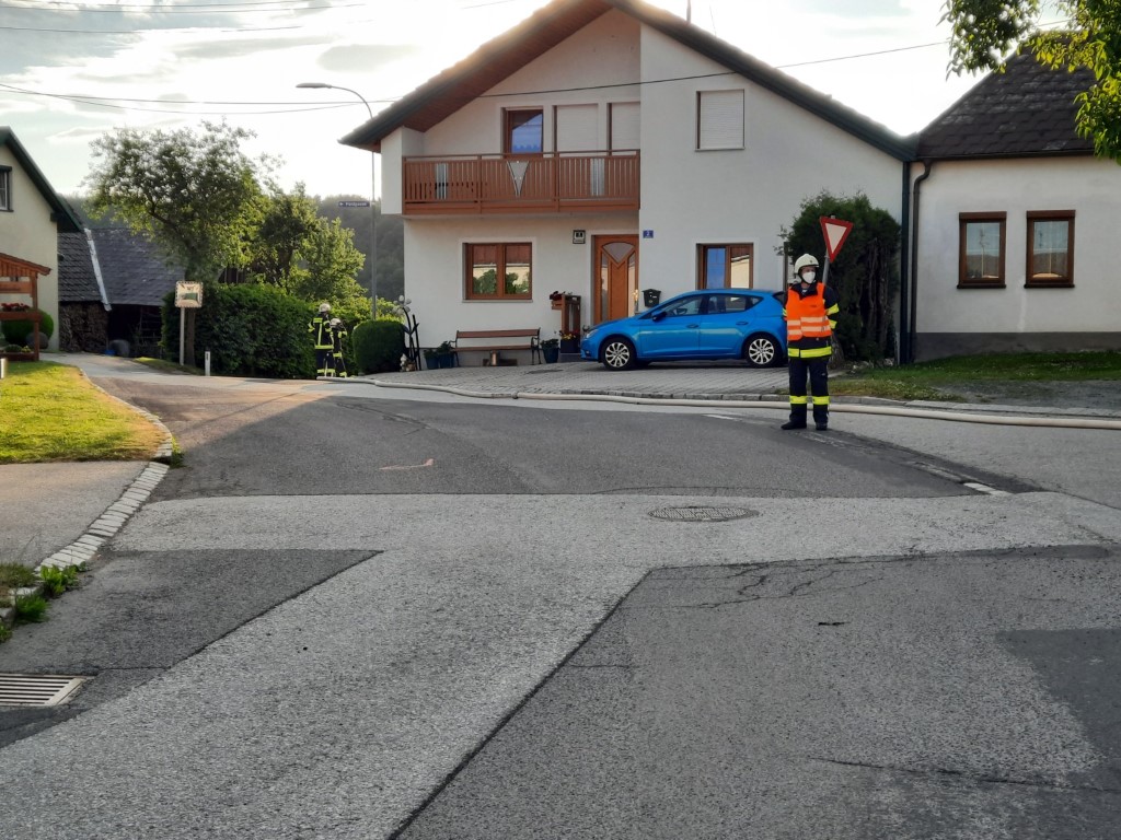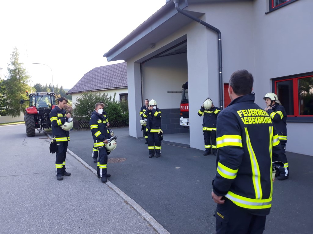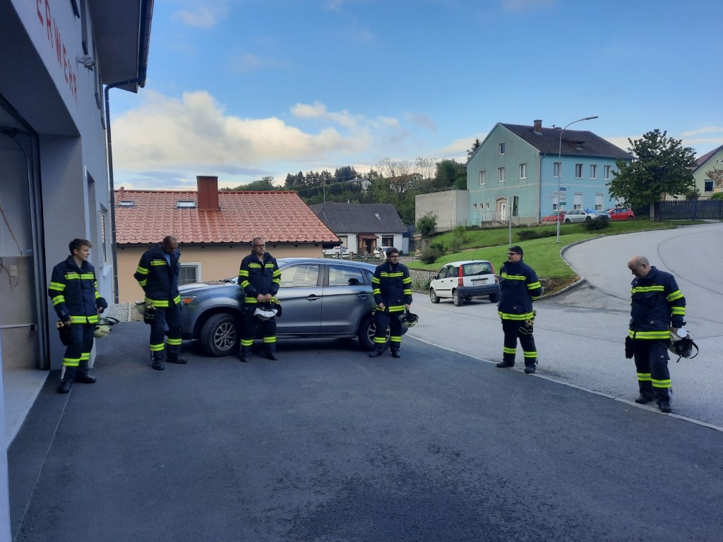 Für die Brandeinsatzübung lautete die Übungsannahme „Flurbrand im Bereich der Gärten Dorfplatz 2 und 3“. Unter Einhaltung der geltenden Corona-Maßnahmen rückte die Mannschaft mit dem TLF-A, MTF und TSA aus. Übungsleiter OBM Daniel Schlögl erteilte folgende Befehle: