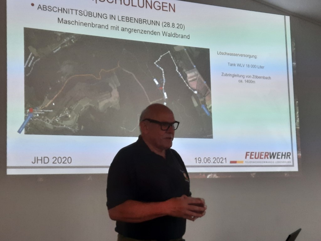 Im Rahmen der Jahreshauptdienstbesprechung (im Anschluss an Inspizierung) erfolgte im ersten Schritt ein Rückblick auf das Jahr 2020. Altkommandant OBI Ing. Walter Weber berichtete, dass 5 technische und ein Brandeinsatz abzuarbeiten waren. Weiters konnten in den ersten beiden Monaten noch 5 Präsenzlehrgänge an der Landesfeuerwehrschule besucht werden:
