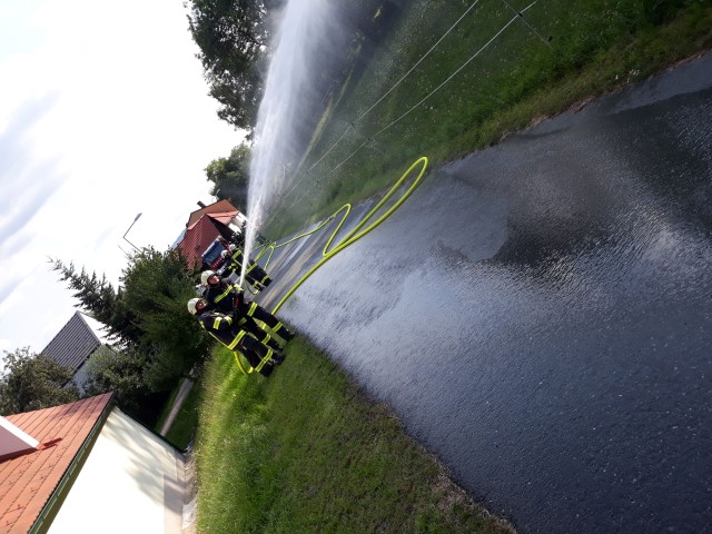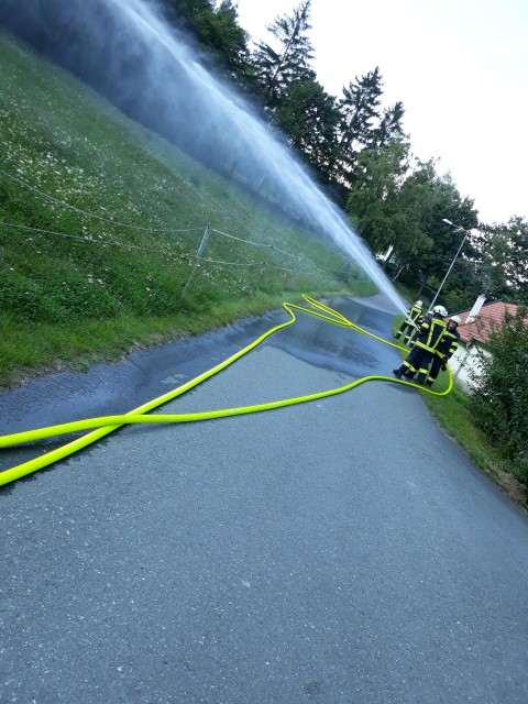 Unsere Wehr rückte mit dem TLF-A, dem MTF sowie 15 Mann zur Übung aus. Vor Ort mussten wir, gemeinsam mit der FF Kogl, das 3. Szenario erledigen. Die FF Kogl errichtete eine B-Zubringerleitung zu unserem TLF-A. Mittels 2 C-Rohren unserer Wehr sowie 2 C-Rohren der FF Kogl wurde der Waldbrand bekämpft.