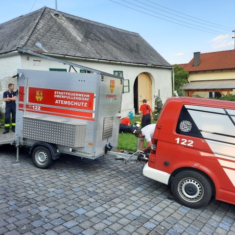 Neben der Waldbrandbekämpfung musste auch ein Atemschutztrupp abgestellt werden. Dieser Trupp wurde bei der Innenbrandbekämpfung des Wohnhausbrandes (Szenario 1) eingesetzt.
