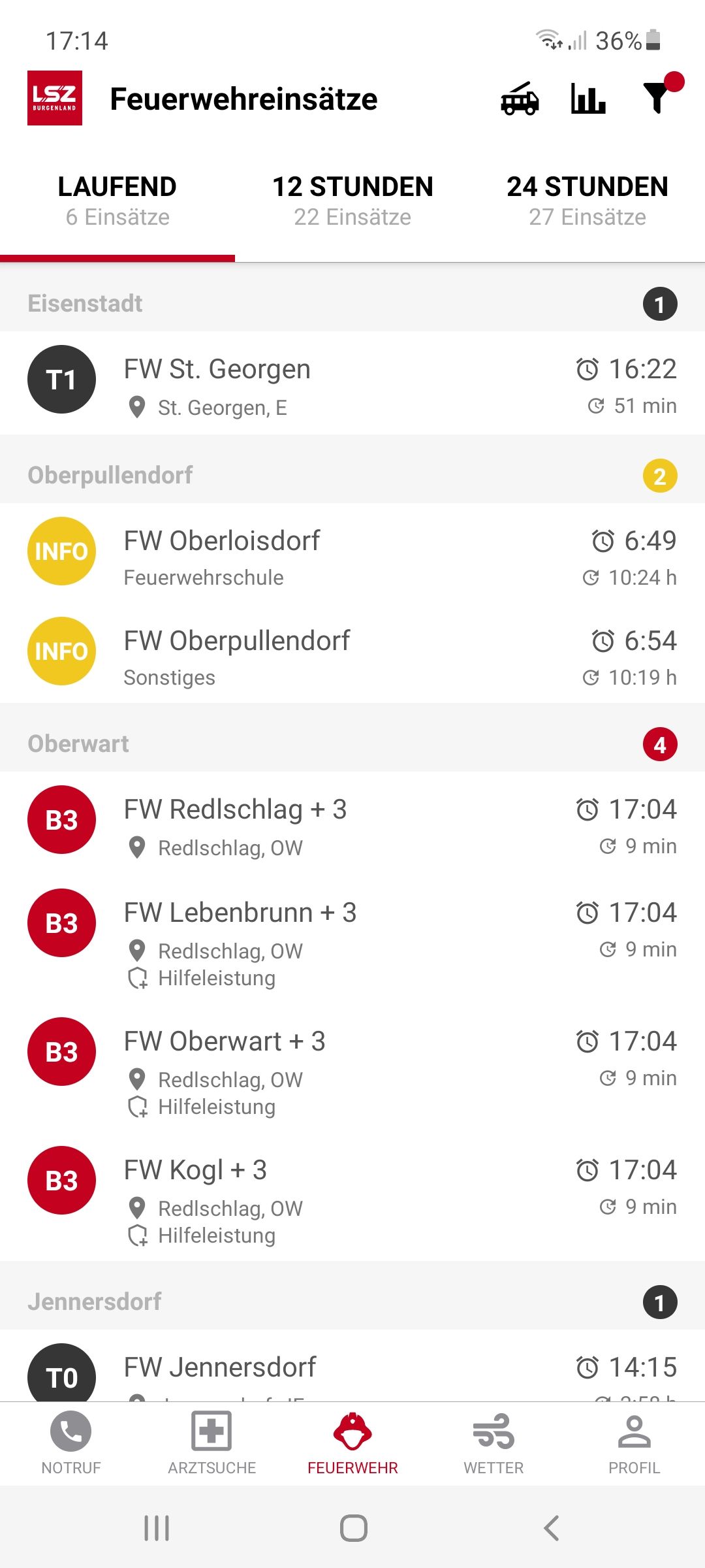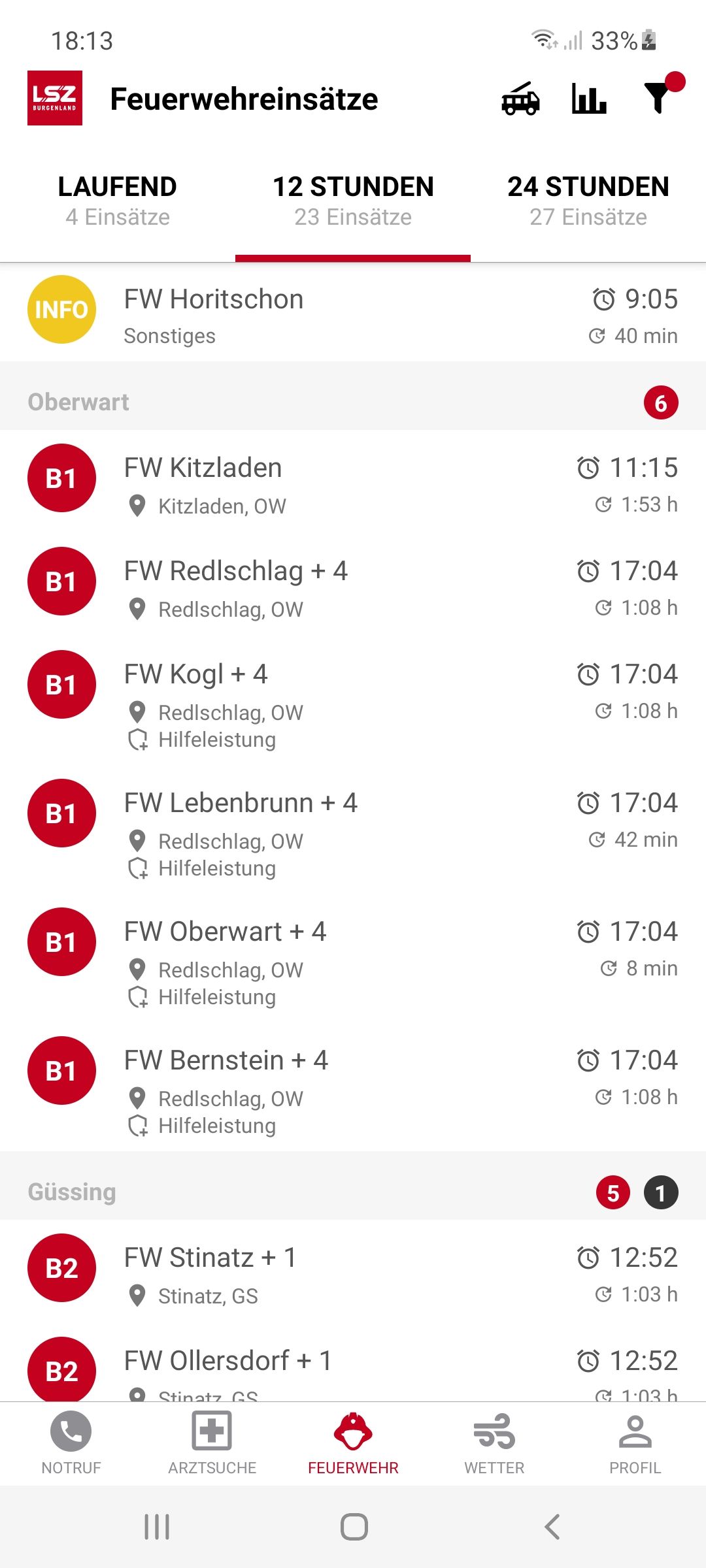 Laut LSZ alarmierte Dienststellen: Freiwillige Feuerwehren Bernstein, Kogl, Lebenbrunn, Oberwart und Redlschlag sowie die Polizei.