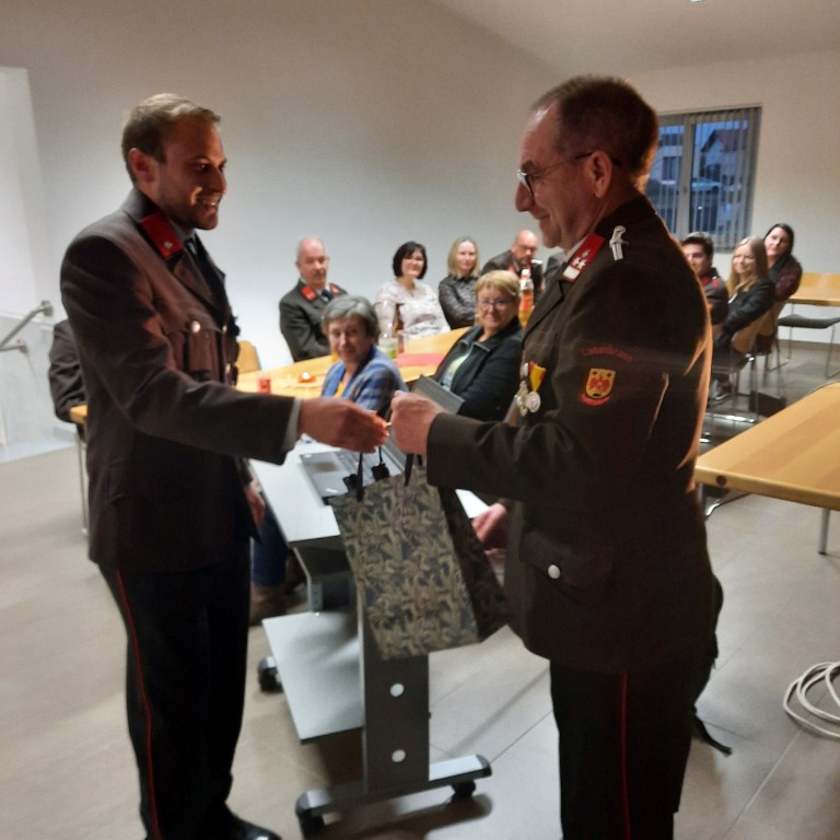 Im Rahmen der Jahreshauptdienstbesprechung wurden Markus Böhm und Paul Weber zum Löschmeister befördert. Weiters wurde HLM Hannes Böhm ein kleines Geschenk für seine Tätigkeiten als Gruppenkommandant (bis 2021) überreicht.