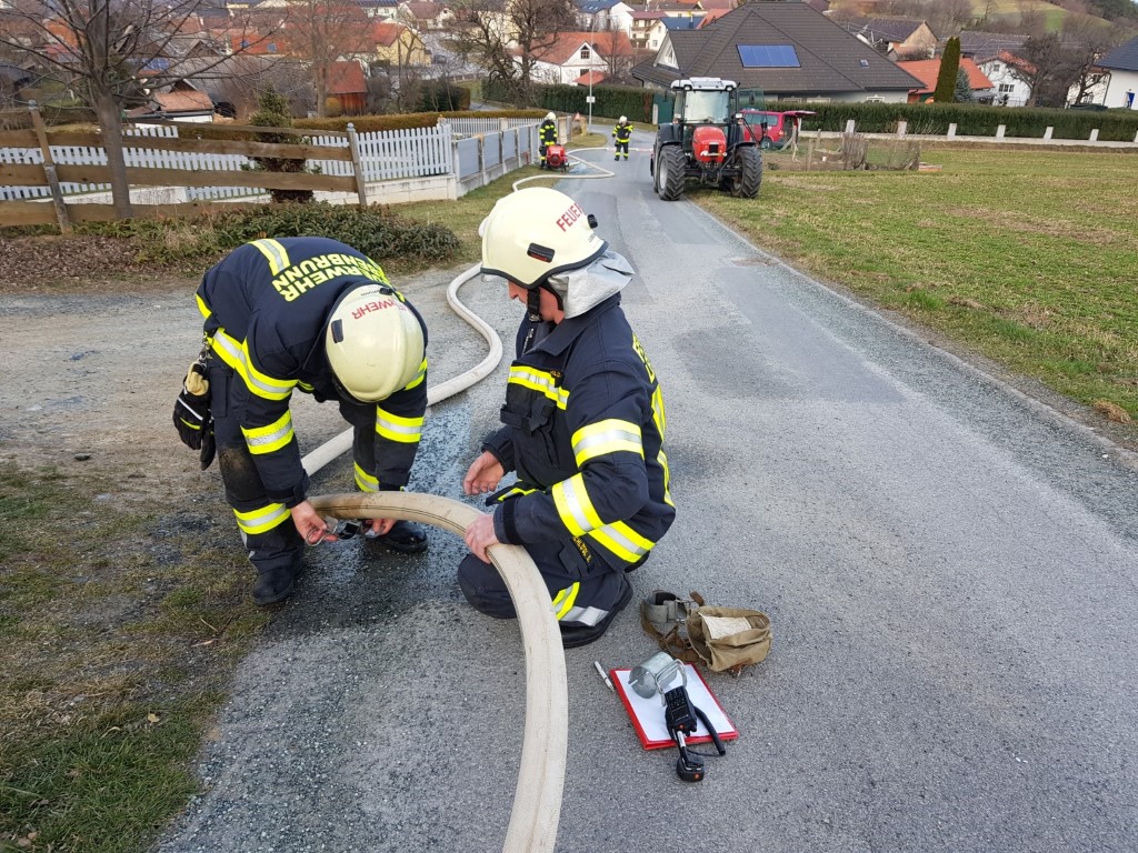 Nach kurzer Erläuterung des Szenarios durch Einsatzleiter BI Andreas Schlögl rückte die Mannschaft mit dem TLF-A, TSA und MTF aus.