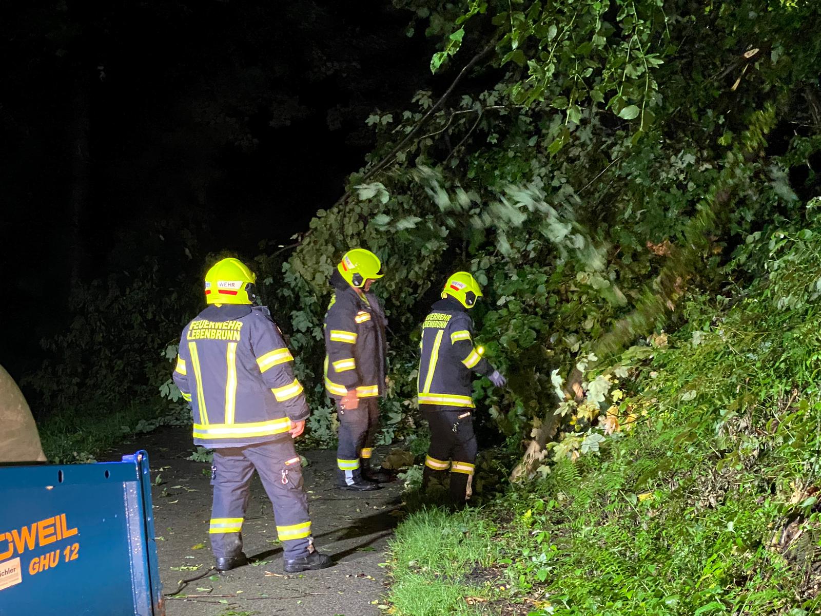 Um 00:42 Uhr wurden die Mitglieder der FF Lebenbrunn mit Sirenenalarm aus dem Schlaf gerissen. Auf der L345 (kurz nach Ortsausfahrt Richtung Steinbach) sowie am Güterweg Richtung Pilgersdorf blockierten mehrere Bäume die Fahrbahn.