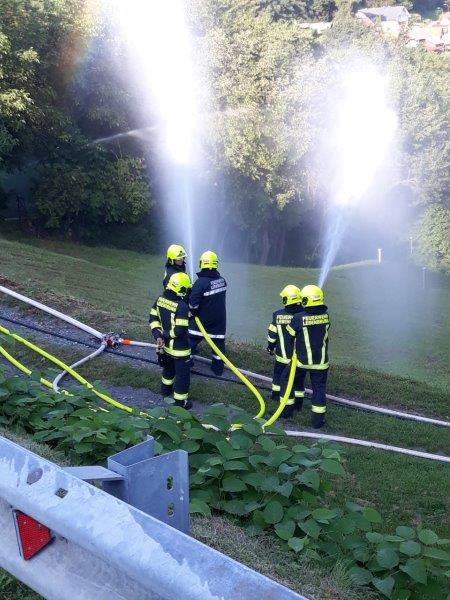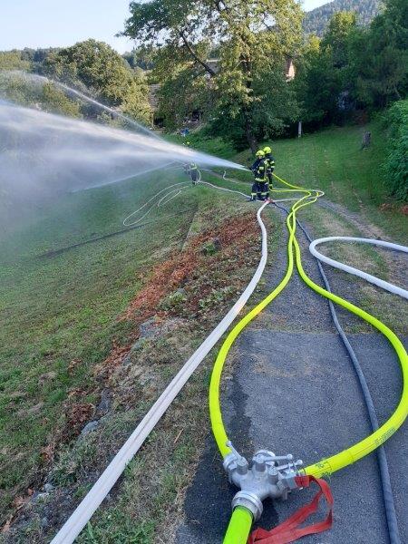 Die Wasserversorgung des TLF-A erfolgte mittels B-Zubringerleitung. Diese wurde von der FF Steinbach aufgebaut und durch uns fertiggestellt.