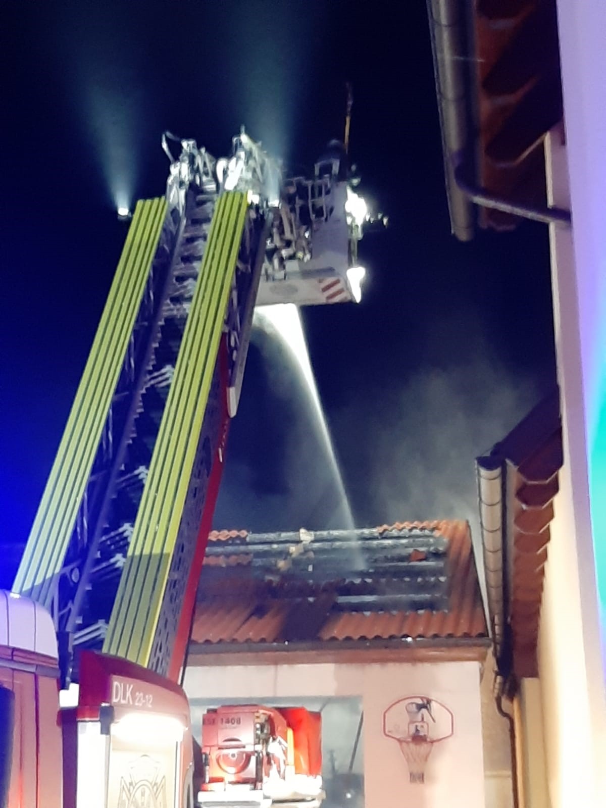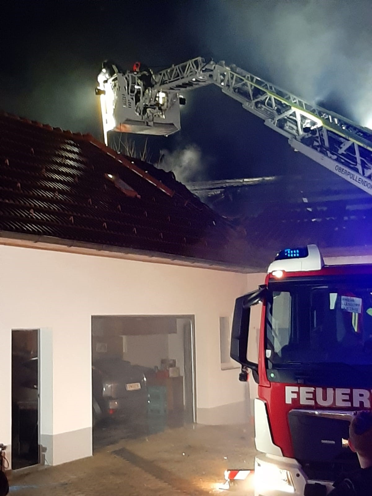 Unter Einbindung der Drehleiter Oberpullendorf wurden weitere Löschmaßnahmen von „oben“ durchgeführt. Durch das schnelle und professionelle Eingreifen der Einsatzkräfte konnte eine Ausweitung des Brandes auf die Nachbargebäude verhindert werden. Nach ca. einer Stunde war der Brand unter Kontrolle. Um 23:22 Uhr konnte Brand aus gegeben werden. Der komplette Einsatz wurde durch den Einsatz einer Drohne unterstützt. Dadurch konnten kleine Brandherde bzw. Glutnester identifiziert und rasch gelöscht werden.