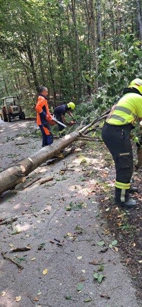 5 Mann unserer Wehr rückten mit dem TLF-A aus, zerkleinerten den Baum und reinigten anschl. den Güterweg.