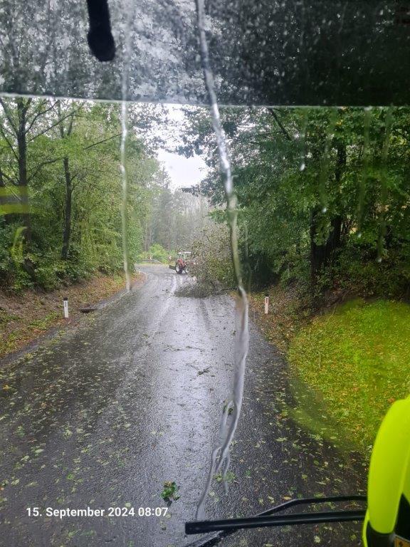Am 15. September musste die Feuerwehr 2x ausrücken. Die erste Alarmierung (persönlich) erfolgte um ca. 8 Uhr. Kurz vor der Ortseinfahrt (von Steinbach kommend) wurde ein Baum entwurzelt und ragte auf die Landesstraße. Die Mannschaft (6 Mitglieder mit TLF-A sowie einem privaten Traktor) entfernten den Baum und reinigten anschl. die Fahrbahn. Gegen 8:45 Uhr konnnte ins Feuerwehrhaus eingerückt und die eingesetzten Geräte gereinigt werden.