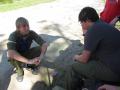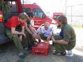 Grunddurchgang: Wiederum galt es in 2 Durchgängen eine möglichst gute Zeit zu erreichen, um in die Finaldurchgänge der besten 16 Gruppen zu kommen. Da Kuppeln ging relativ reibungslos und auch das Leinenanlegen passte so halbwegs. Am Ende stoppte der WTF bei 20,88 sec. - fehlerfrei. Noch wussten wir nicht, ob diese Zeit für ein Weiterkommen reichen würde, also gingen wir nach einer kurzen Pause - die übrigens sinnvoll genutzt wurde - wieder ans Werk. Abermals gelang uns eine leichte Steigerung und die Zeit stoppte bei 20,28 sec. - abermals fehlerfrei. Somit stiegen wir - zur Überraschung aller - als 10. Platzierter in die nächste Runde auf.