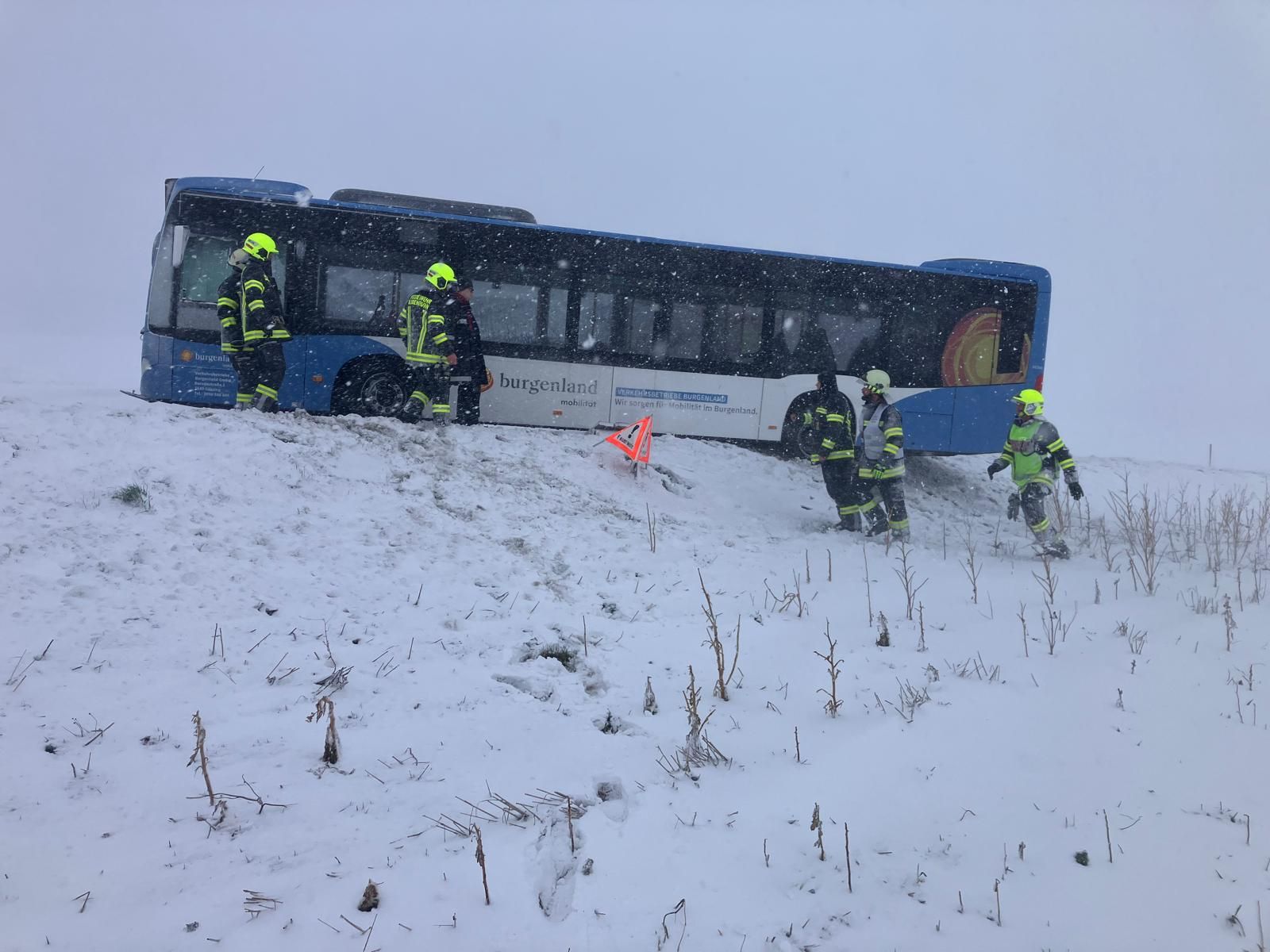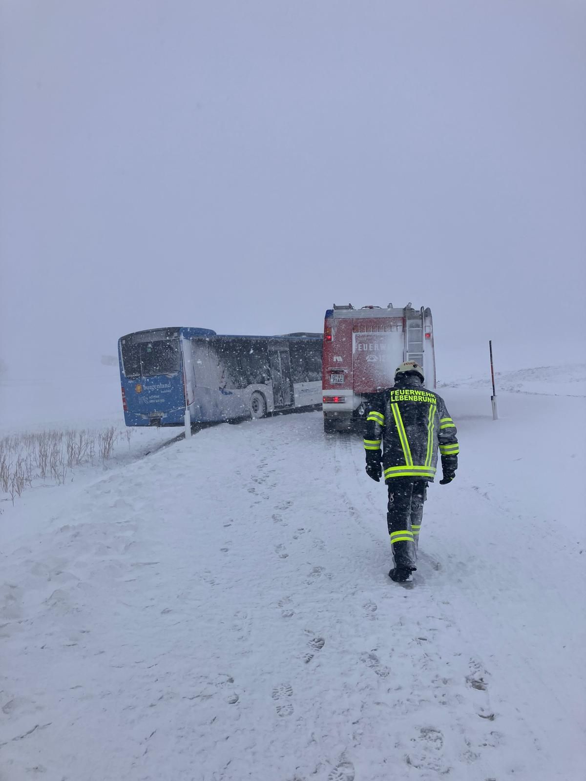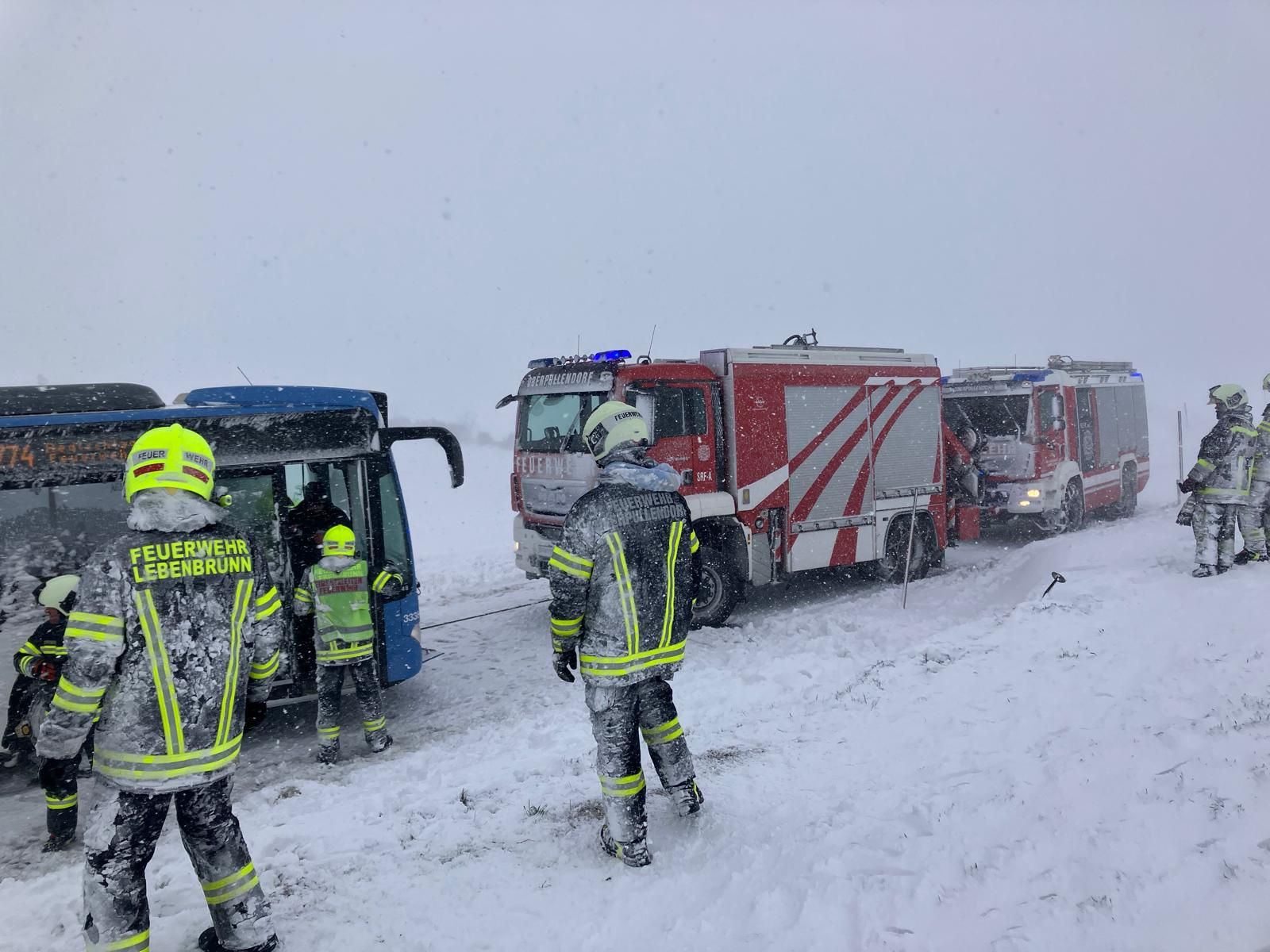 Autobus blieb auf L345 hängen – 3 Feuerwehren, bei sibirischen Wetterverhältnissen, im Einsatz!
