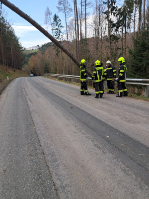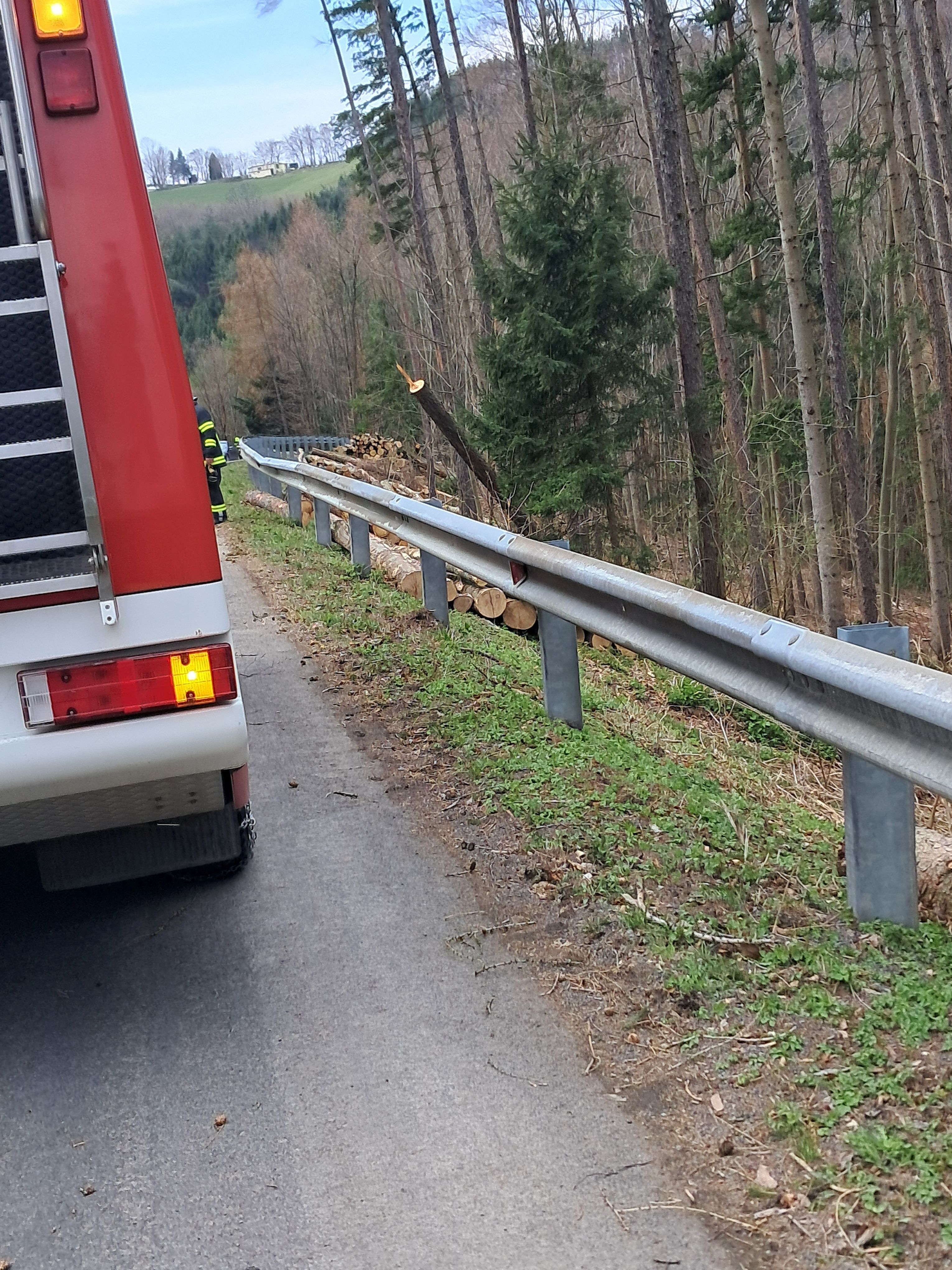 Knapp vor 13:15 Uhr wurden wir davon in Kenntnis gesetzt, dass auf der L345 (StrKM 3,5) ein, auf einer Leitplanke aufliegender, Baum über die Fahrbahn hängt. Via AlsonX wurde stiller Alarm ausgelöst und kurz darauf rückte die Mannschaft mit dem TLF-A aus, sicherte den Einsatzbereich ab und beseitigte den Baum.