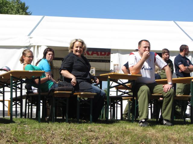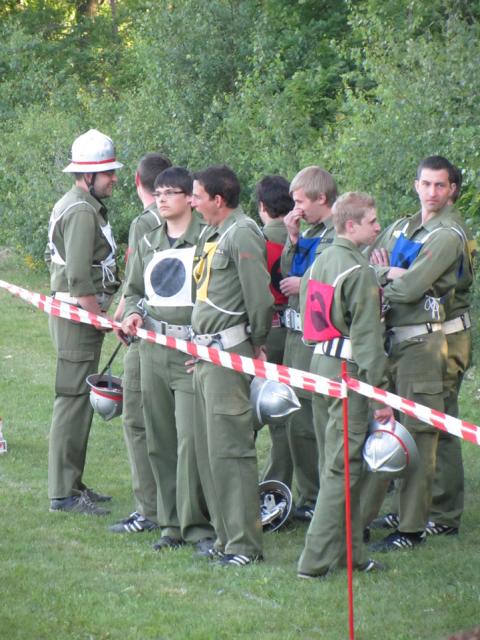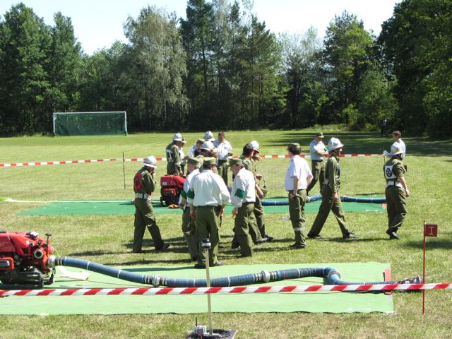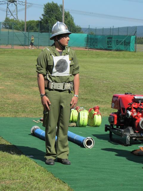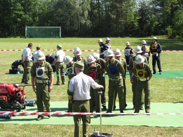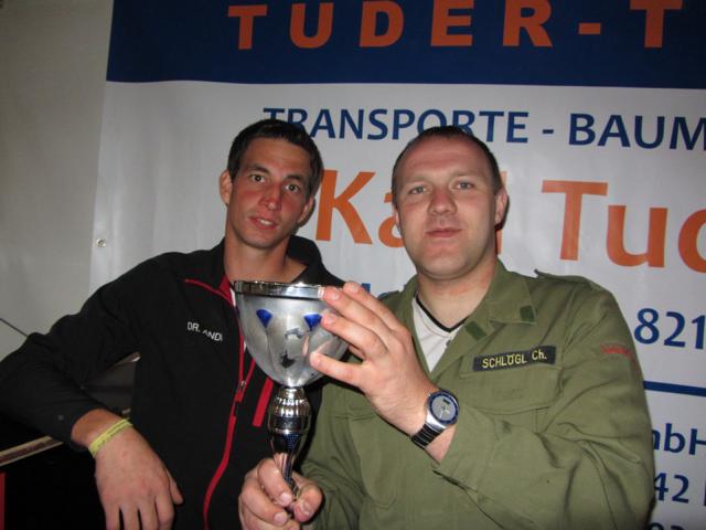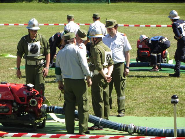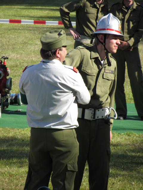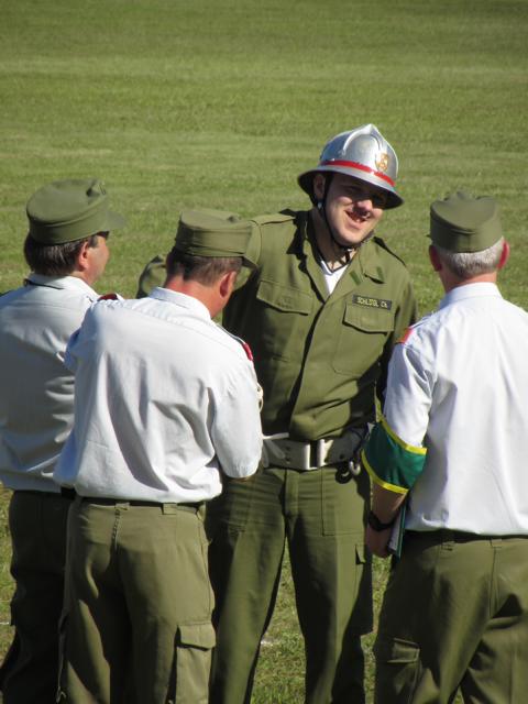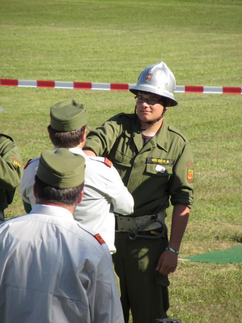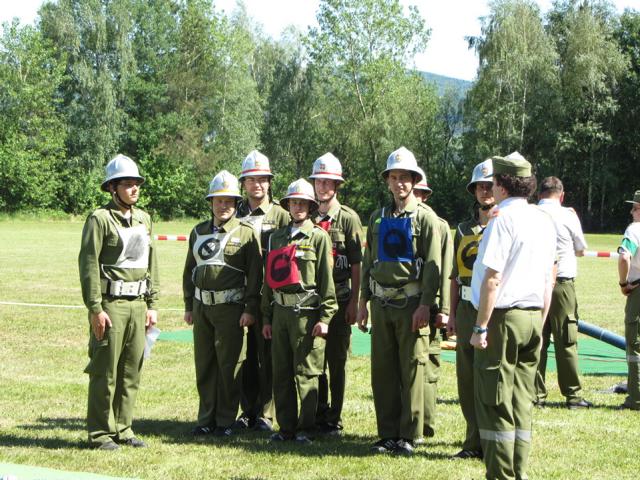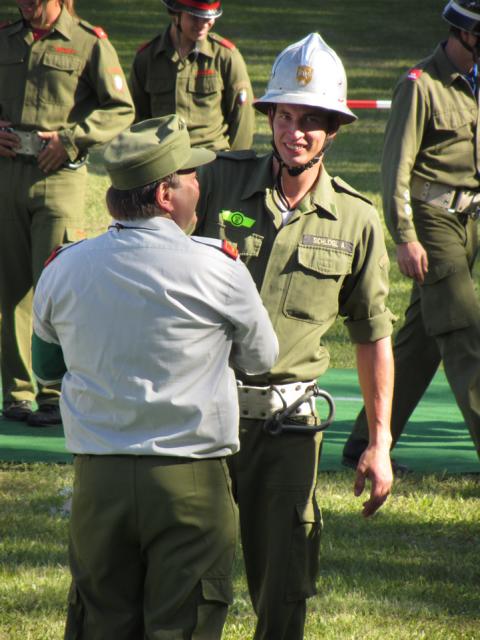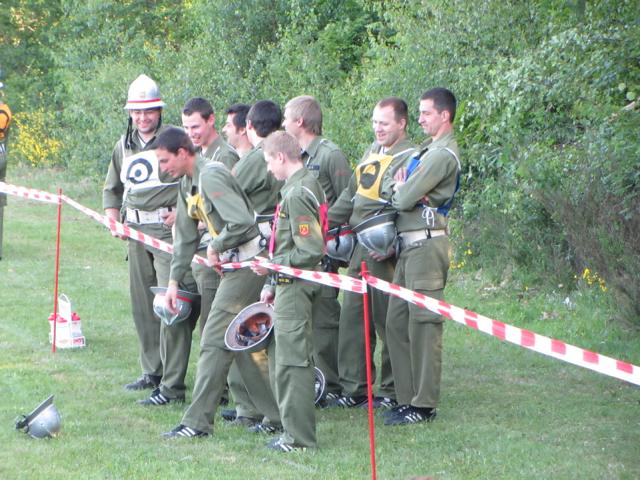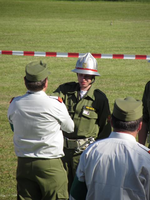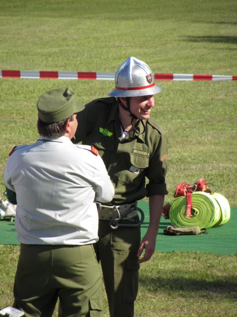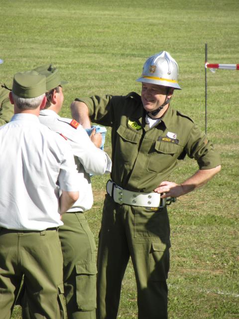 Grunddurchgang/Bewerb Silber: Ohne allzu grosse Hoffnungen nahmen wir diesen Bewerb in Angriff. Die Ziehung der Positionen verlief überraschend gut - lediglich im Angriff war bereits im Vorfeld klar, dass es eng werden würde. Somit vergatterte der neue Gruppenkommandant (PFM Weber Michael - persönliche Anmerkung: selten einen so guten "frischgfangten" Grkdt gesehen.) seine Mannschaft. Das Kuppeln ging flott von statten und so konnte das 2. Rohr bereits nach ca. 38 sec. "Wasser marsch" geben. Etwas länger benötigte der Angriff für seine Leitung - der STF stoppte bei 47,41 sec. - fehlerfrei. Angesichts der guten Leistung des Wassertrupps eine enttäuschende Zeit. Somit hofften wir auf den 2. Grunddurchgang aber auch hier bot sich das gleiche Bild. Allerdings kamen in diesem Lauf noch 5 Fehlerpunkte für eine falsche Endaufstellung hinzu. Ohne diesen Patzer wäre eine Zeit deutlich unter 40 sec. drinnen gewesen. Auch kein Beinbruch - in der Wertung Silber reichte diese Zeit für den 2. Platz. Sieger wurde abermals die FF-Reichendorf (Stmk.)