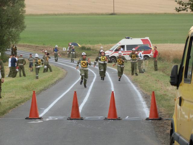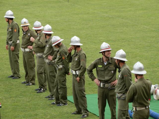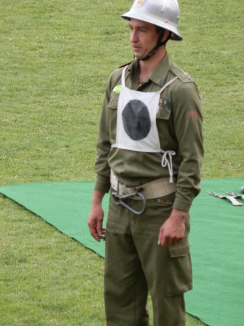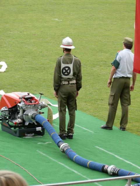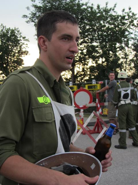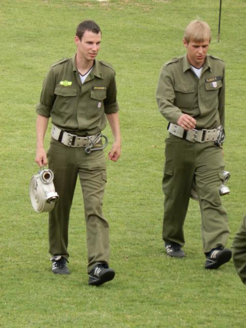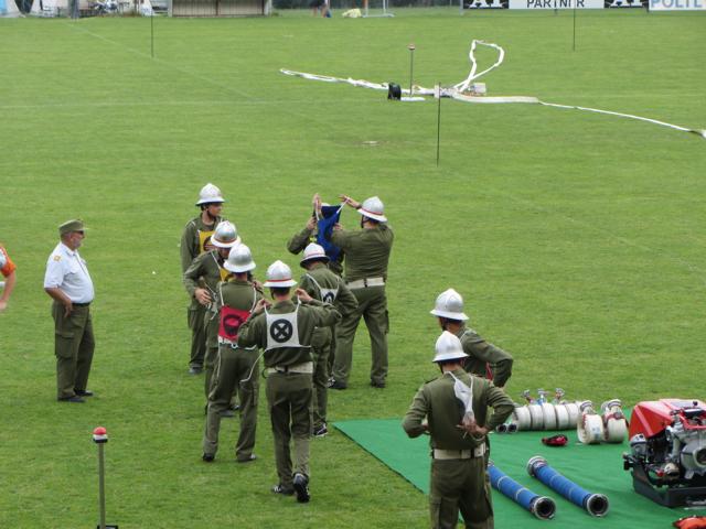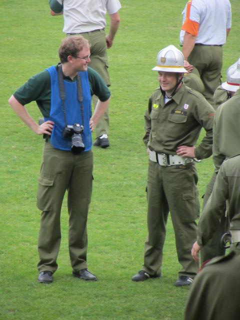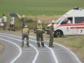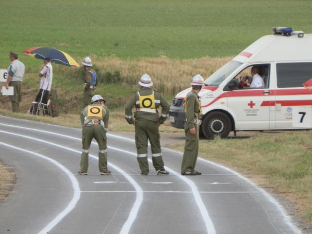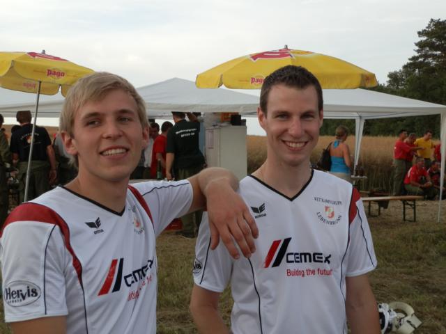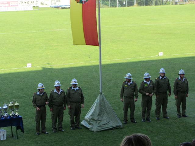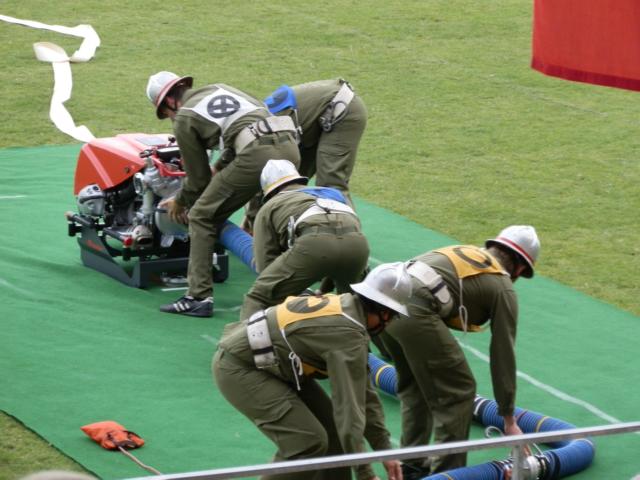 In diesem Sinne begaben wir uns auf die Bewerbsbahn. Konzentriert wurden die Geräte zusammengeräumt und in die richtige Position gebracht. Im nachhinein betrachtet geschah in dieser Phase des Bewerbes ein Fehler, der uns eine Topplatzierung kostete, dazu aber später. Das Kuppeln ging relativ reibungslos von statten - waren doch zwei erfahrene Männer am Werk. Danach nahm das Schicksal seinen Lauf. Der WTM konnte beim Verteiler seinen Schlauchträger nicht öffnen und so musste der WTF nervenzerreibende Sekunden beim Verteiler warten, bis dieses Problem behoben wurde (das Problem wurde bereits wie oben angeführt erkannt, jedoch unzureichend gelöst). Schlussendlich konnte der STF bei 37,69 sec. die Zeit stoppen - gefühlt gingen bei diesem Missgeschick 3 - 4 sec. verloren. Danach folgte die Bewertung und diese ergab erfreuliche 0 Fehlerpunkte. Den anschließenden Staffellauf absolvierten wir bei leichten Nieselregen mit 52,31 sec. Das ergab eine Gesamtpunktezahl von 410,00 - Platz 12 von 108 Gruppen.