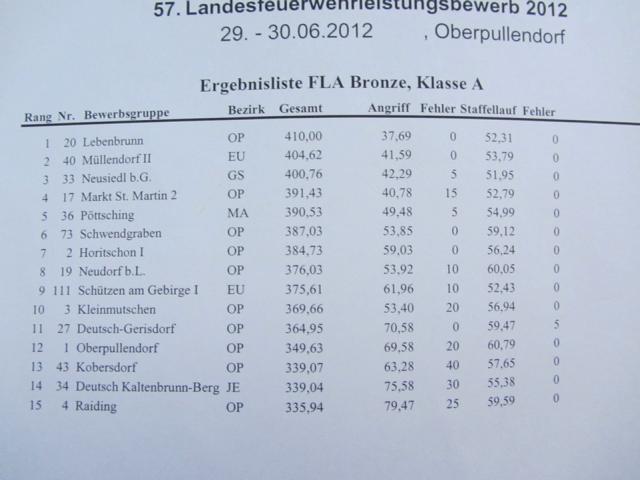 Unsere Wettkampfgruppe nahm am Freitag, den 29.06.2012, am 57. Landesbewerb in Oberpullendorf teil.