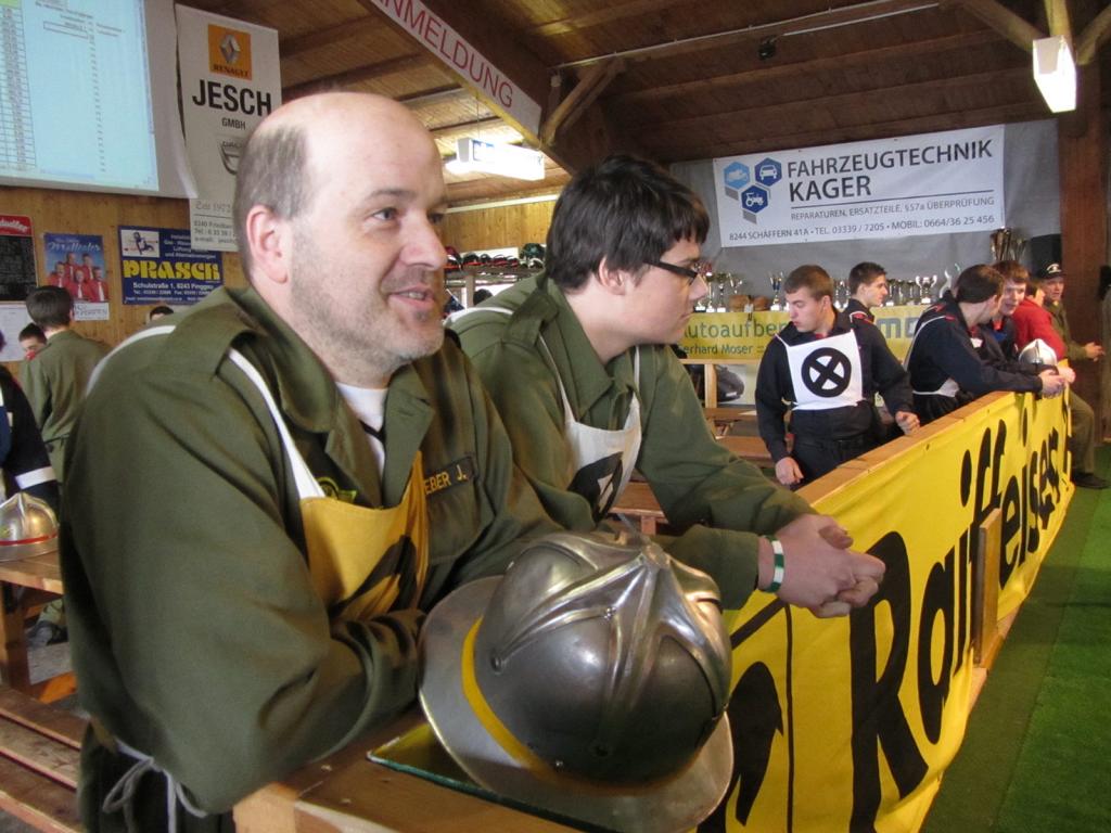 Im weiteren Verlauf des Bewerbes wurden durchwegs Spitzenzeiten gelaufen und schön langsam konnten sich die logischen Favoriten durchsetzen. Im kleinen Finale trafen die Hausherren aus Baumgarten auf Ternitz-Mahrersdorf. Zwar waren die Gäste aus Ternitz-Mahrersdorf um den Tick schneller, jedoch mit einem offenen Saugkopf lässt sich nun mal kein Bewerb gewinnen. Im grossen Finale kämpften Falkenstein und Hochneukirchen um den Tagessieg. Beide Mannschaften zeigten im Verlauf des Bewerbes durchwegs Spitzenzeiten. In einem packenden Durchgang demonstrierten beide Gruppen abermals ihr Können, was sich in der Siegerzeit wieder spiegelte. Falkenstein stoppte bei 15,40 sec. - dicht gefolgt von Hochneukirchen mit 15,70 sec. Somit ging der Tagessieg an die Falken.