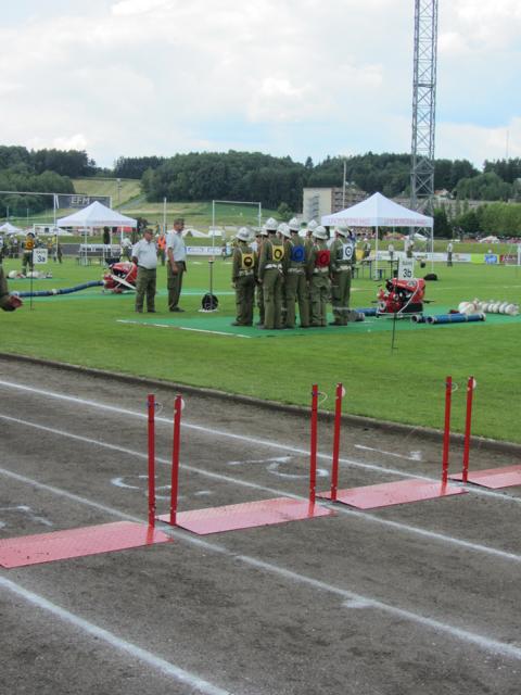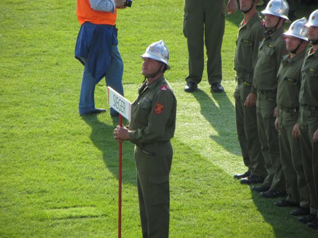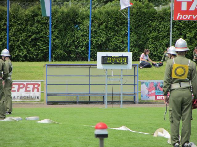 Zur vorgeschriebenen Zeit meldeten wir uns beim Berechnungsausschuss A für den Bewerb Bronze an und wenig später waren wir auch schon auf der Bahn. Aufgrund der Trainingsleistungen durften wir auf eine gute Zeit hoffen (Anmerkung: bislang konnten wir diese jedoch nicht auf den Punkt bringen). Nach dem Zusammenräumen ging es flott ans Werk. Das Kuppeln verlief ausnahmsweise ruhig, lediglich bei 2 Handgriffen wäre noch Zeit drinnen gewesen. Auch der Angriff lieferte eine solide Leistung ab und als der STF die Zeitnehmung beendete, standen gute 33,84 sec. auf der Uhr. Somit war unser intern gestecktes Ziel einmal erreicht, doch leider konnten die Bewerter nicht über 1 x falsches Arbeiten und somit 10 Fehlerpunkte hinwegsehen. Im Staffellauf erliefen wir 54,96 sec. und erstmals in der Geschichte der FF-Lebenbrunn kassierten wir im Staffellauf 5 Fehlerpunkte. Endergebnis: 396,20 Punkte und Rang 20 in der Endwertung und die Erkenntnis, dass ohne diese unnötigen Fehler (Fehler sind eigentlich immer unnötig) der 5. Platz möglich gewesen wäre.