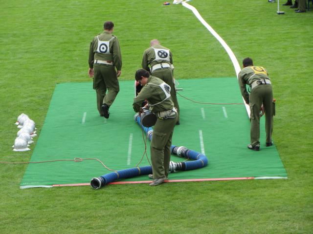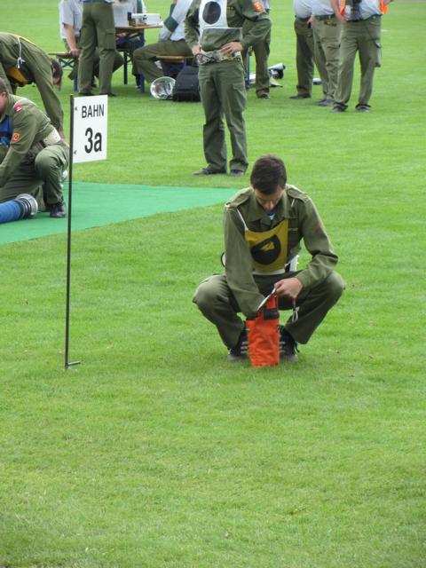 Nach kurzer Frustbewältigung und einer gewissen Wurstigkeit war Silber an der Reihe. Die Ziehung war solide – die Kuppler waren erfahren – der Angriff war ebenfalls gut aufgestellt. Lediglich der Gruppenkommandant machte uns Sorgen ;-) So wurden Kommandos vergessen und der Hauptbewerter kurzfristig zum Bewerter degradiert. Das Arbeiten ging ohne Hektik ab, was schon einmal ein gutes Zeichen für uns ist. Die Zeit stoppte bei 44,99 sec. und als dann noch der Durchgang mit „fehlerfrei“ abgesegnet wurde war die Erleichterung groß. Im Staffellauf konnten wir uns leicht steigern – 54,83 sec. waren ok – und diesmal liefen wir fehlerfrei. Endergebnis: 400,18 Punkte und der ausgezeichnete 5. Platz.