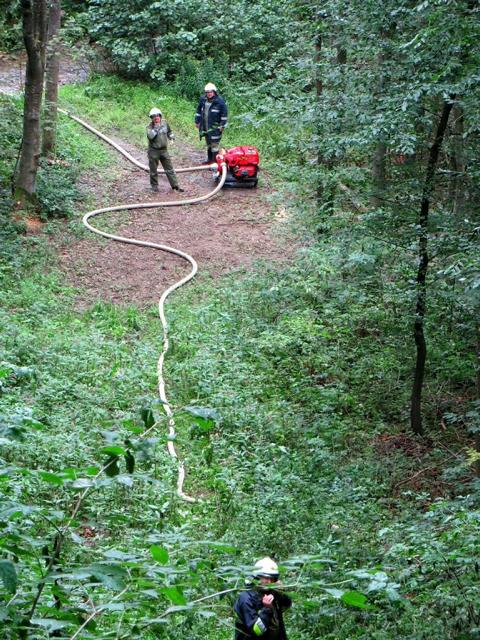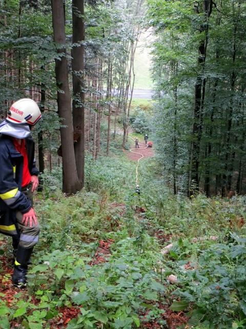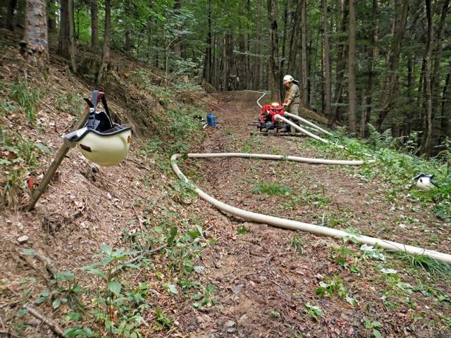 Als Wasserentnahmestelle diente unter anderem auch der Steinbach. Von einer fix installierten Ansaugstelle weg wurde eine Zubringerleitung - zum Teil über extrem steiles Gelände - zur Versorgung von Tank Pilgersdorf aufgebaut. Als weitere Entnahmestellen wurden 2 Hydranten sowie das Wasserbassin im Ortszentrum herangezogen. Die 4 Zubringerleitungen, zur Versorgungen der Tanklöschfahrzeuge, hatten eine Gesamtlänge von 2 Kilometern. Zur Personenrettung wurden insgesamt 8 Atemschutztrupps eingesetzt, wobei 7 Hausbewohner bzw. 1 verunfalltes Feuerwehrmitglied gerettet werden mussten.